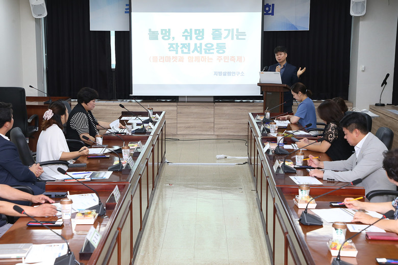 첫 번째 강연자로 나선 지방살림연구소 마경남 객원연구원은 부평구 풍물대축제를 사례로 들며 지역축제를 통한 컬처노믹스라는 주제로 강의하였고, 이어 두 번째 강의는 이충호 지방살림연구소 대표가 플리마켓과 함께하는 주민축제라는 주제로 계양구 작전서운동의 사례를 들어 강의하였다. 강연을 들은 후 연구회 위원들과 참여자들은 함께 질의하고 논의하는 시간을 가졌다.