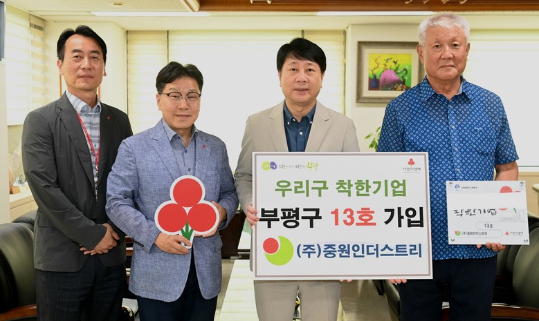 차준택 구청장은 “중원인더스트리는 오랜 시간 묵묵히 이웃사랑을 실천해온 지역사회의 든든한 동반자”라며 “더불어 사는 따뜻한 부평을 만들어 나가는 데 큰 도움이 돼 주셔서 감사하다”고 말했다.