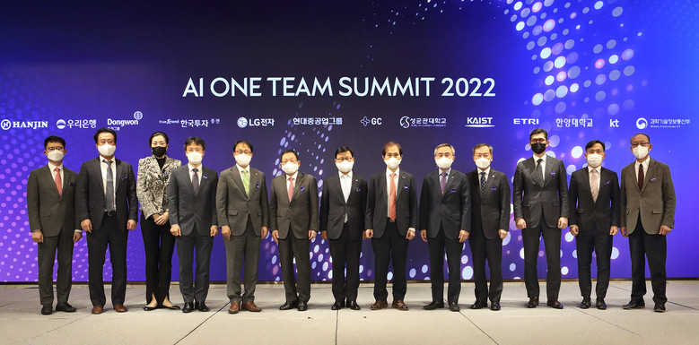 이번 ‘AI 원팀 서밋 2022’ 행사에는 KT 구현모 대표, KAIST 이광형 총장, 한양대학교 김우승 총장, 성균관대학교 신동렬 총장, ETRI 김명준 원장, 동원그룹 박인구 부회장, ㈜한진 조현민 사장, 우리은행 이원덕 은행장, 현대중공업그룹 김성준 부사장, LG전자 김병훈 부사장, 한국투자증권 신봉관 본부장, 녹십자홀딩스 이진천 실장, 그리고 과학기술정보통신부 강도현 정보통신정책실장 등이 참석했다.