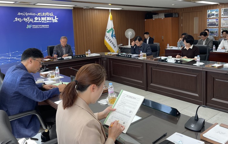 전남도자치경찰위원회는 지난 20일 위원회 회의실에서 10월 정기회의를 열어 전남경찰청으로부터 수확기 농산물 절도 예방 대책 등을 보고받고 심도 있는 논의를 했다.