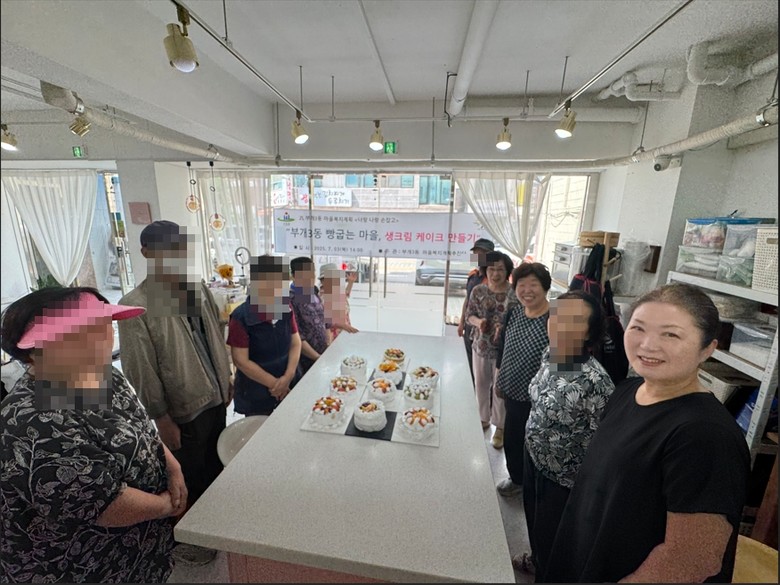 이들은 지역사회보장협의체 위원들과 함께 반죽에서부터 과일장식까지 전문강사의 지도 아래 생크림 케이크를 직접 만들어 보았다.