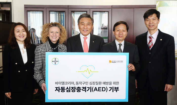 바이엘코리아(대표 잉그리드 드렉셀)는 지난 5일, 응급상황에서 동작구민의 즉각적인 심장질환 처치를 돕고 합병증을 예방할 수 있도록 동작복지재단과 ‘자동심장충격기 기부 협약식’을 갖고 자동심장충격기 5대를 전달했다. 이번에 전달된 자동심장충격기는 동작구보건소 등 지역 내 관할부서와의 협의를 통해 연중 필요한 곳에 설치될 예정이다.