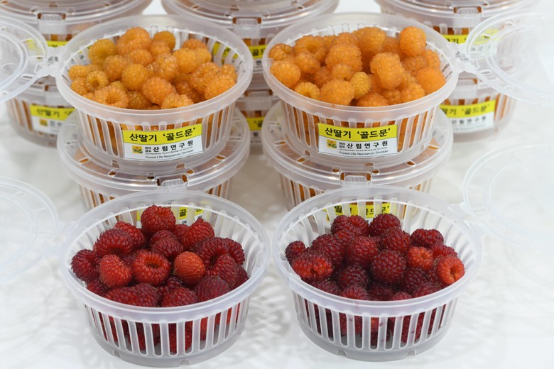 산딸기 ‘골드문’은 전남지역 주요 산을 대상으로 2013년부터 산림자원탐사단을 운영하면서 수집한 산딸기 가운데 특이 개체를 선발해 육종한 신품종이다.
