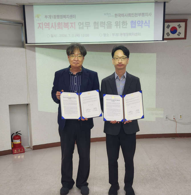 [부평구 세계타임즈=심하린 기자] 부평구(구청장 차준택) 부개1동은 지난 3일 한국마사회 인천부평지사와 지역사회 복지 향상 및 사업·정책 홍보 협력을 위한 업무협약을 체결했다.