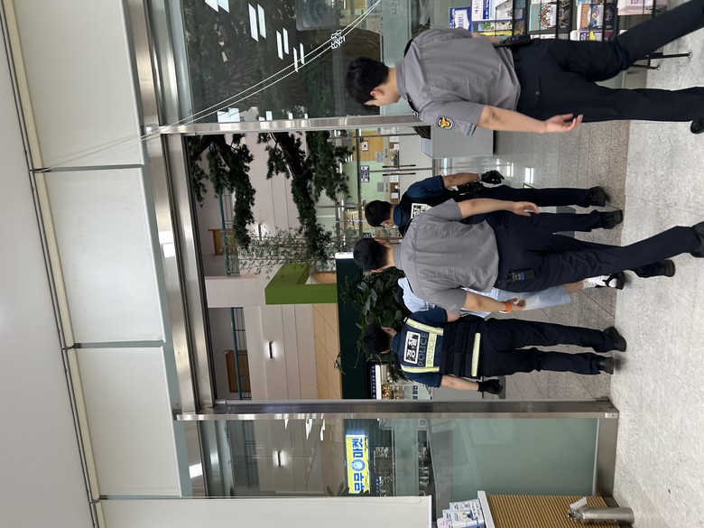 이날 모의훈련은 가상 시나리오에 따라 ▲진정 요청, ▲녹음·녹화, ▲비상벨 호출, ▲대피, ▲경찰 인계 절차를 실전처럼 연습하는 등 비상벨 점검, 경찰의 신속한 출동 협조 체계를 확인하는 데 중점을 뒀다.