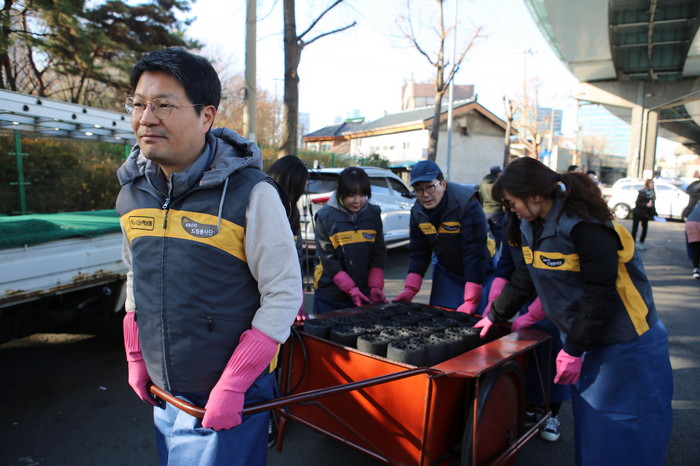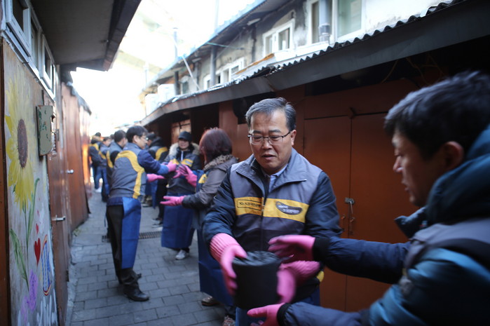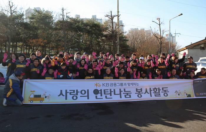 이날 영등포 쪽방촌에서는 KB국민은행 영등포지역영업그룹 정상철 대표, KB국민은행 사격단, KB손해보험, KB국민카드 등 계열사 임직원 100여명이 함께 연탄을 배달하며 이웃들과 훈훈한 정을 나눴다.