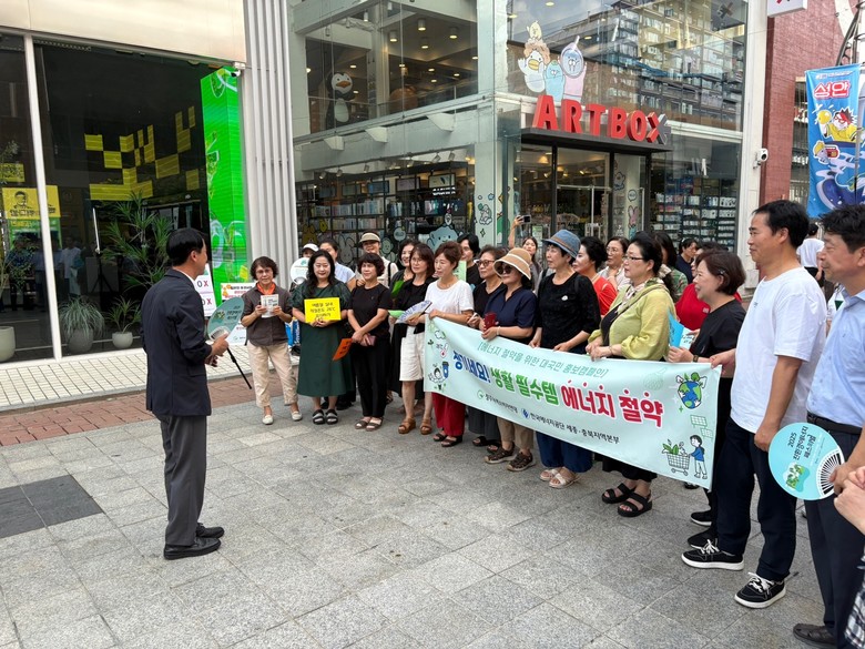 이번 캠페인에는 충북도, 청주시, 충북에너지산학융합원, 한국에너지공단 세종충북본부, 청주 녹색소비자연대 등 30여 명이 참여해 △적정 실내 온도 26℃ 이상 유지하기 △에너지 캐시백* △불필요한 전력사용 절감 등 에너지절약 실천 요령을 안내하는 길거리 캠페인을 추진했다.