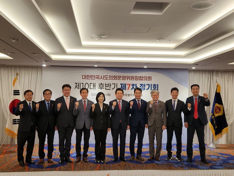 [경북 세계타임즈=한윤석 기자] 경상북도의회 이칠구 운영위원장이 4월 25일(목) 제주 썬호텔에서 개최된 대한민국시도의회운영위원장협의회(회장 이칠구) 제10대 후반기 제7차 정기회에 참석하여 회의를 주재했다.