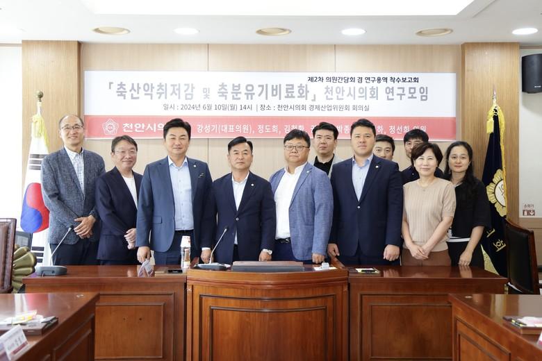[천안시 세계타임즈=백택기 기자] 천안시의회「축산악취저감 및 축분유기비료화」연구모임(대표의원 강성기)은 10일, 제2차 의원간담회 및 정책연구용역 착수보고회를 개최했다.