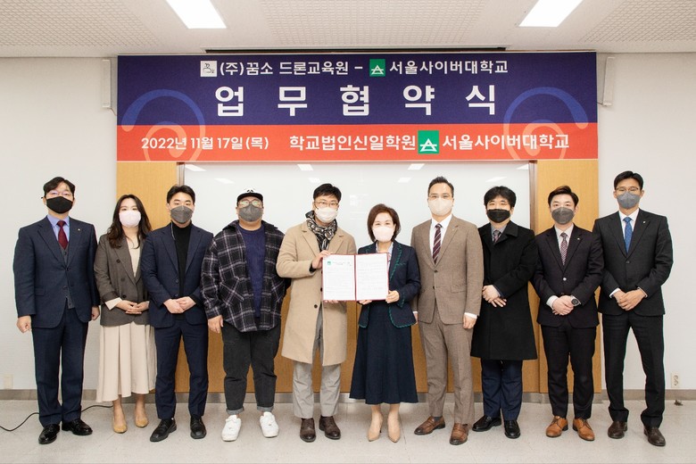 [세계타임즈 = 백진욱 기자] 서울사이버대학교는 17일(목) 고양특례시 소재 ㈜꿈소 드론교육원과 상호 발전 및 우수 인력 양성을 위한 제휴협력 업무협약을 체결했다고 17일 밝혔다.