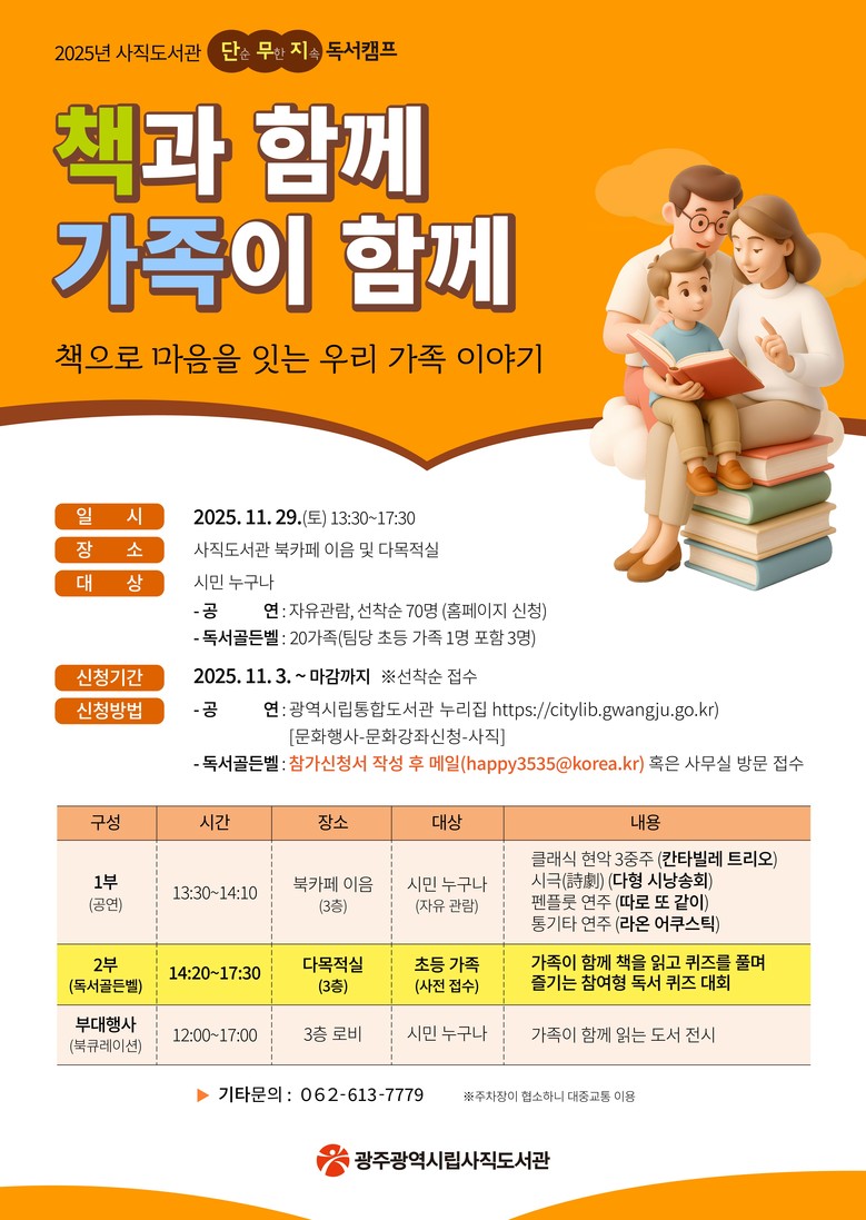 광주 사직도서관, ‘책으로 마음 잇는 가족’ 독서행사