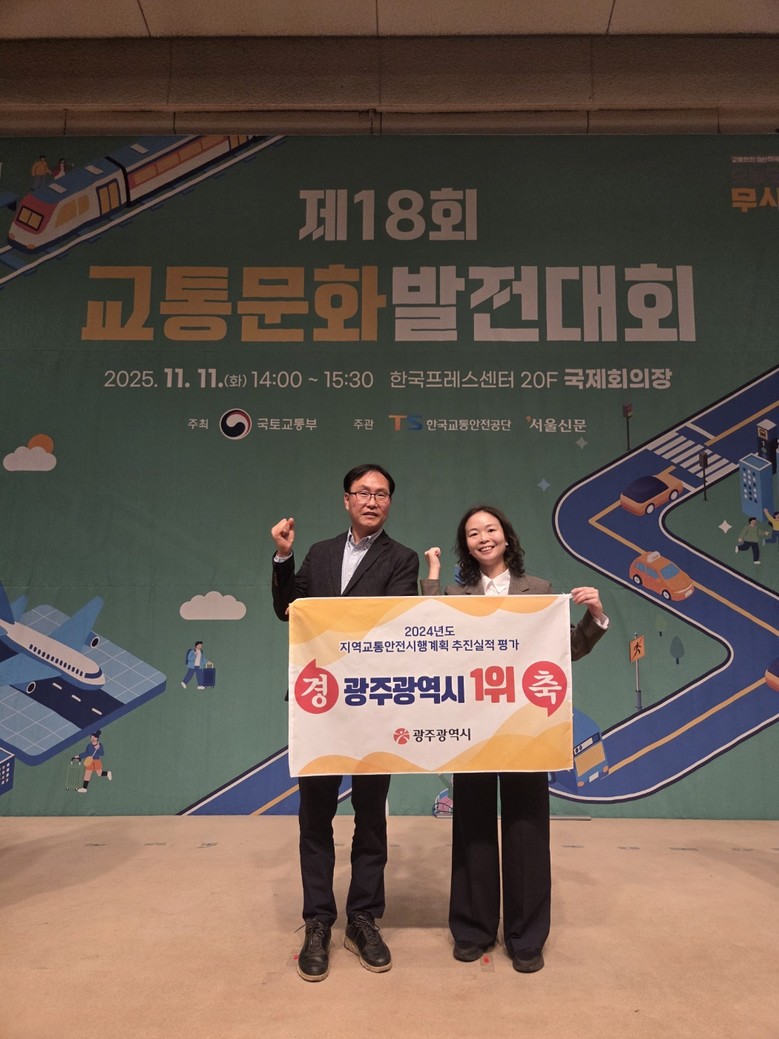 [광주 세계타임즈=손권일 기자] 광주광역시(시장 강기정)는 지난 11일 서울 한국프레스센터 국제회의장에서 열린 제18회 교통문화발전대회에서 국토교통부 주관 ‘2024년도 지역교통안전시행계획 추진실적 평가’ 특·광역시 부문 1위를 차지해 국토교통부 장관상을 수상했다.