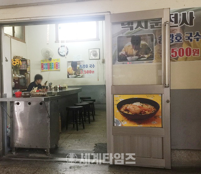 특히 분식점 입구 앞 플래카드에는 '택시운전사 송강호 국수'라고 적혀 있고, 송강호가 국수를 먹는 장면이 담겨 있어 있어 눈길을 끈다.
