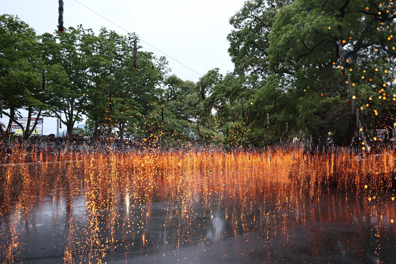 마을에서 자체 제작한 참나무 숯가루를 한지로 싸서 꼬아 만든 낙화를 줄에 걸어 불을 붙이면, 숯가루가 불을 머금고 바람에 흩날리며 장관을 연출한다.