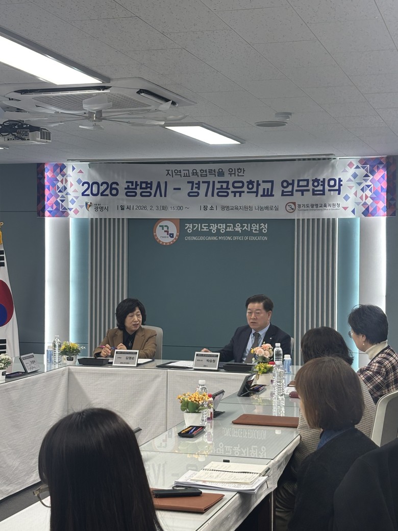 [광명시 세계타임즈=송민수 기자] 광명교육지원청(교육장 김명순)과 광명시(시장 박승원)는 2월 3일, 광명교육지원청 나눔배로실에서 지역사회 교육 자원을 연계한 지역교육협력 체계 구축 및 ‘경기공유학교’ 운영 활성화를 위한 업무협약을 체결했다.