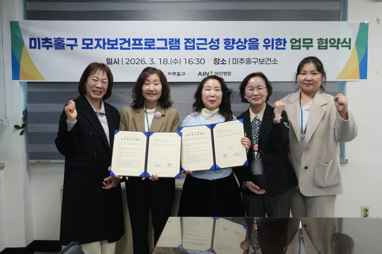 [미추홀구 세계타임즈=심하린 기자] 미추홀구 숭의보건지소(지소장 김영란, 이하 지소)는 지난 19일 아인병원 마더비문화원과 ‘모자보건 프로그램 접근성 향상을 위한 업무협약’을 체결했다고 밝혔다.