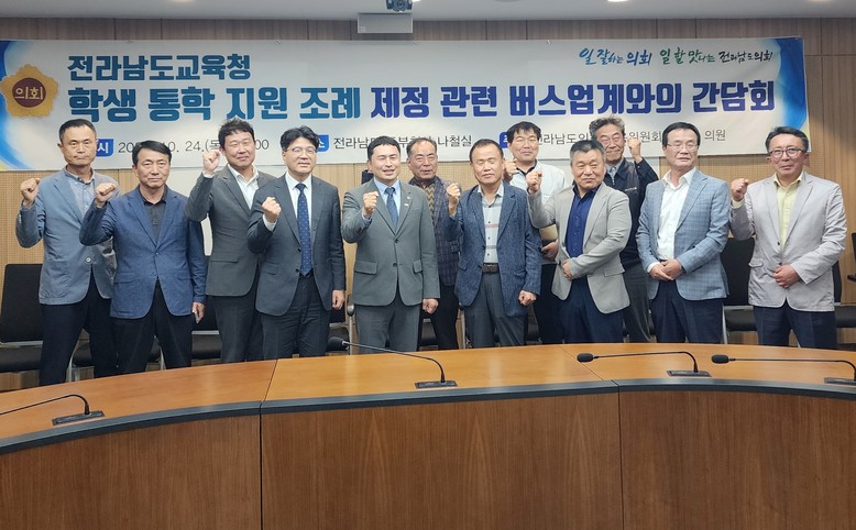 [전남 세계타임즈=우덕현 기자] 전남도의회 임형석 의원(더불어민주당ㆍ광양1)은 지난 10월 24일, 전라남도 동부청사 나철실에서 전라남도교육청 학생 통학 지원 조례 제정 관련 버스업계와의 간담회를 개최했다.