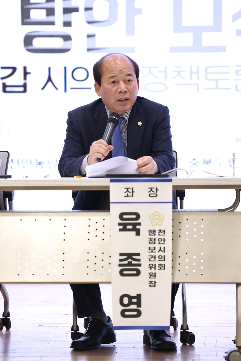 [천안시 세계타임즈=이현진 기자] 천안시의회(의장 김행금) 육종영 의원(더불어민주당, 성환읍・직산읍・입장면)과 박종갑 의원(더불어민주당, 풍세면・광덕면・신방동)이 지난 2월 17일 천안시청 대회의실에서 ‘천안시 자율방범대 활성화 방안 모색’ 정책토론회를 개최했다.