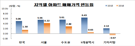 조사 결과 2016년 올해 서울 아파트 매매가격은 4.22% 상승한 것으로 조사되었다.