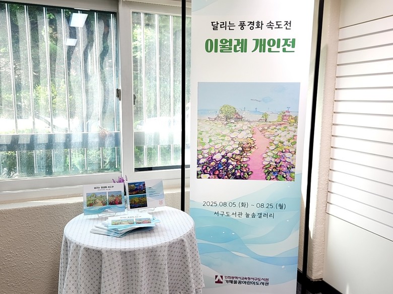 [인천 세계타임즈=심하린 기자] 인천광역시교육청서구도서관(관장 정연순)에서는 8월 5일부터 25일까지 이월례 작가의 개인전 ‘달리는 풍경화 속도전’을 늘봄갤러리에서 운영한다.