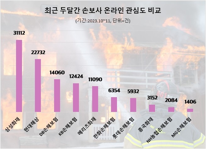 조사 대상 손보사는 지난 두달간 정보량 순으로 △삼성화재 △현대해상 △DB손해보험 △KB손해보험 △메리츠화재 △한화손해보험 △롯데손해보험 △흥국화재 △NH농협손해보험 △MG손해보험 등이다.