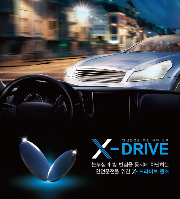 `X-드라이브’렌즈는 야간 운전에도 시야 확보가 뛰어나다. 밤 운전에 방해 요소인 가로등과 전조등의 눈부심과 빛 번짐을 동시에 차단시켜 운전자가 전방을 보다 뚜렷하게 볼 수 있다.