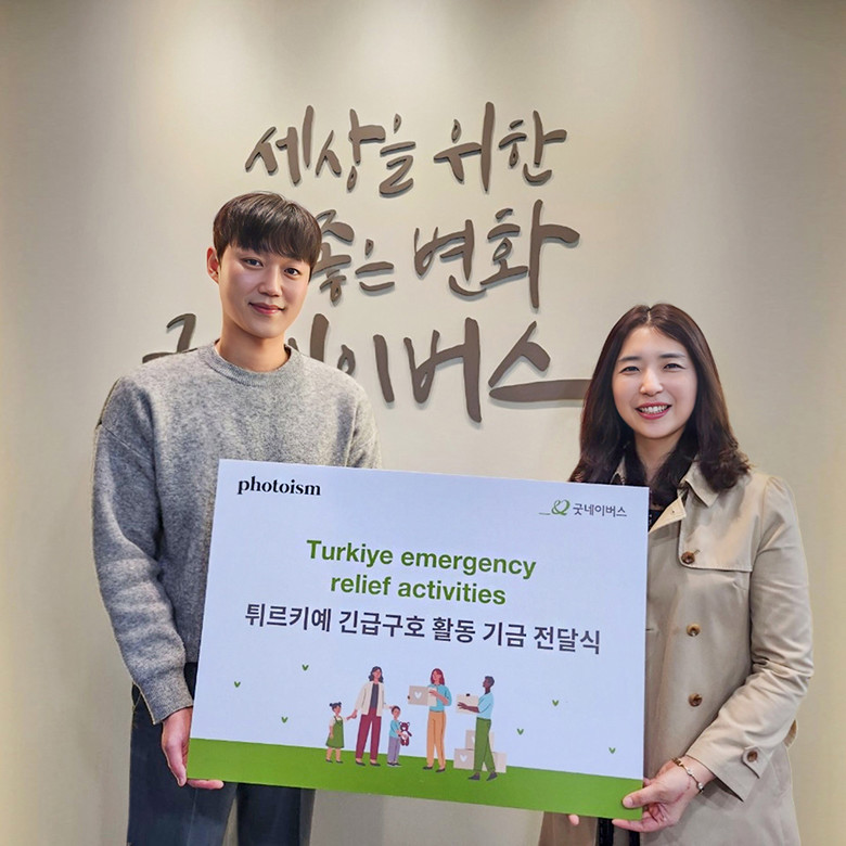 포토이즘 기업은 튀르키예 지진 피해 지원을 위해 2월 17일부터 24일까지 <PRAY FOR> 이라는 기부프레임 캠페인을 진행하였으며 발생한 수익금 전액을 이번 긴급구호를 위해 기부했다. 굿네이버스 서울본부는 해당 성금을 튀르키예 피해 복구 및 트라우마 치료를 위한 심리사회적 프로그램, 장기재건 사업을 운영하는데 사용될 예정이다.