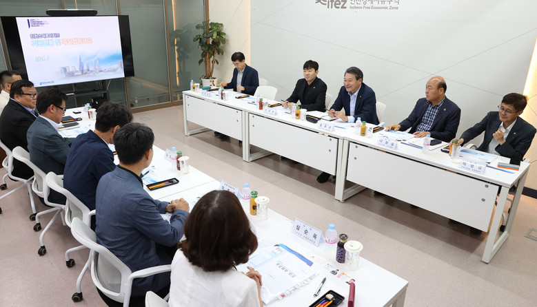 오전 인천스마트시티(주) 현장방문 일정을 소화한 의원들은 오후 경제청 8층 보드룸에서 윤원석 경제청장의 주요 업무보고를 듣고 다양한 의견을 개진했다.