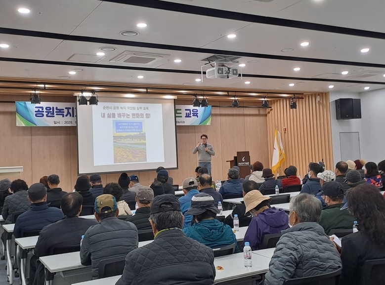 [순천시 세계타임즈=우덕현 기자] 순천시는 지난 26일 호남호국기념관에서 공원·녹지 분야 기간제근로자 100여 명을 대상으로 ‘작업 안전 및 서비스 마인드 향상 교육’을 실시했다고 밝혔다.