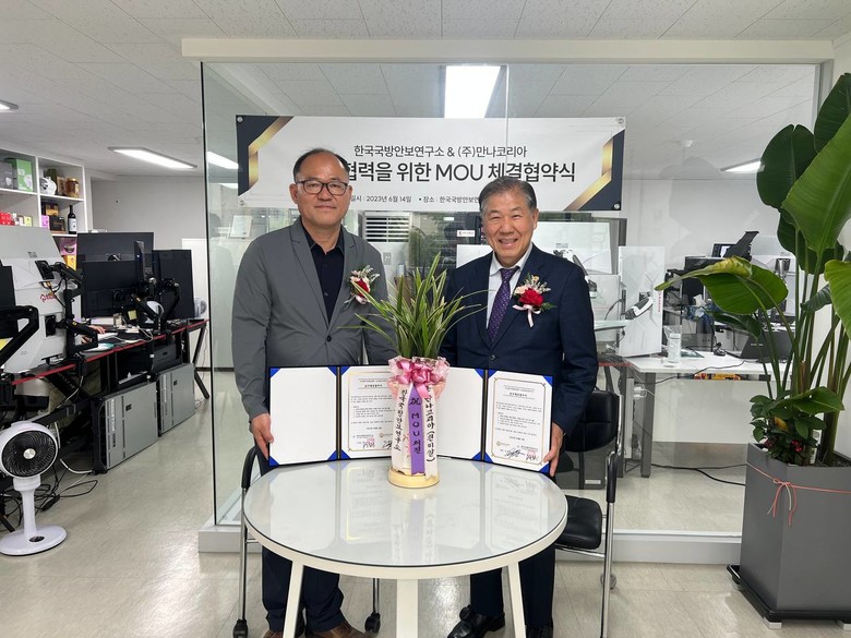 [세계타임즈 백진욱 기자] 국방안보연구소4차산업지원단& (주)만나코리아가 지난14일 MOU체결 협약식을 한국국방안보연구소중앙데이터센터에서 가졌다. 순서는 환영사, 협약서 낭독, 협약서 조인, 기념 촬영 순으로 진행되었다.
