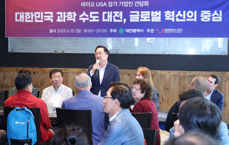 - 이장우 대전시장, 2025 바이오USA 기업인들과 만찬 간담회도 개최 - [세계타임즈=대전 이채봉 기자] 이장우 대전시장은 6월 10~14일 캐나다 일정을 마치고 미국 보스턴으로 이동한 가운데, 15일(현지시각)‘바이오USA’참가 기업인들과 만찬 간담회를 개최했다.