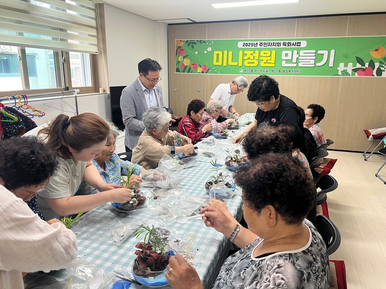 [계양구 세계타임즈=심하린 기자] 인천시 계양구 계산2동 주민자치회(회장 김갑두)는 26일 계산2동경로당에서 어르신들과 함께하는 ‘미니정원 만들기’ 특화사업을 추진했다.