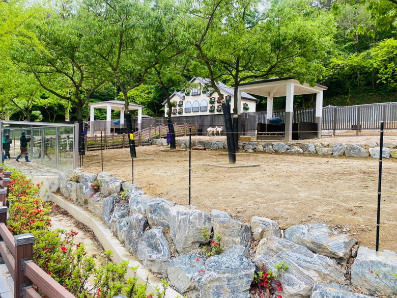 남유럽에 사는 ‘다마사슴의 고향’을 콘셉트로 새단장한 사슴사는 기존의 철조망을 없애고 함정(모트)을 설치해 관람로와 동물사를 구분했다. 또 바닥을 흙과 돌로 바꿔 친자연적으로 개선했다.