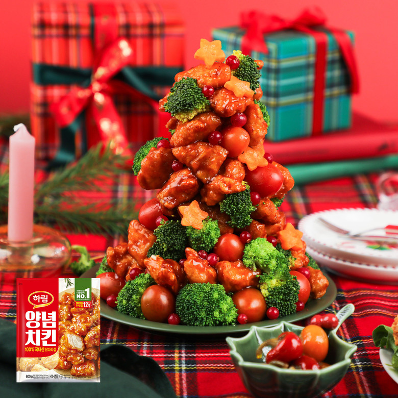 먼저 ‘하림 양념치킨’은 엄선한 국내산 닭다리 순살에 튀김옷을 얇게 입혀 바삭한 식감이 특징이다. 밑간이 살짝 되어 있어 튀긴 다음 양념 없이 담백한 프라이드 순살 치킨으로 즐겨도 손색없다. 함께 들어있는 달짝지근하면서도 매콤한 양념소스에 버무리면 곧바로 맛있는 양념치킨이 완성된다. 브로콜리, 방울토마토, 견과류 등을 곁들여 접시에 쌓아 올리면 귀엽고 먹음직스러운 미니 트리가 된다.