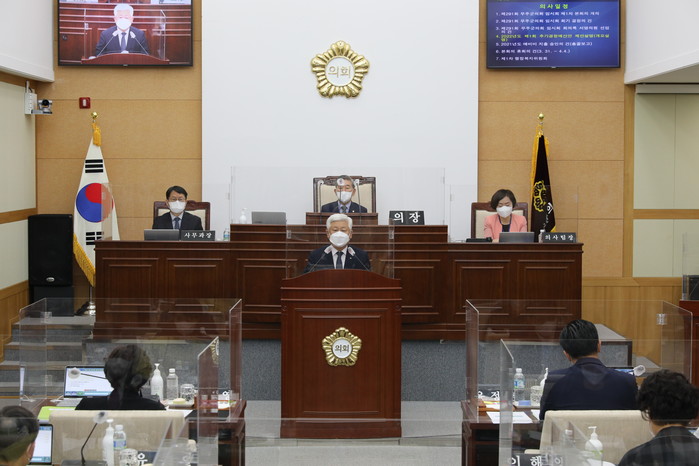 박찬주 의장은 개회사를 통해 “현장중심의 의정활동으로 바쁜 일정을 보내고 계신 동료의원 여러분과 맡은 직무에 최선을 다해 노력하시는 황인홍 군수님을 비롯한 공직자 여러분께도 격려와 감사의 말씀을 드린다”고 말했다.