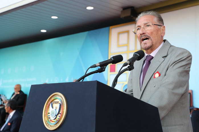 또 그는 평화를 이룰 방법으로 △타인의 다름에 대한 존중 △다채로운 문화를 수용 △서로 나누지 않고 평화롭게 조화로운 세계 건설 △녹색 평화의 길 추구 △완전한 비핵화 등의 방법을 제시하며 HWPL을 평화의 메신저 삼아 여성그룹, 청년그룹과 함께 모든 종교를 하나로 모아 세계평화를 이루자고 당부했다.