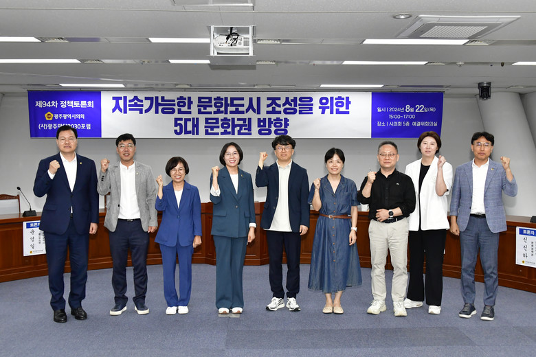정책토론회는 이귀순 시의원이 좌장을 맡고, 정성구 대표(UCL도시콘텐츠연구소), 김광욱 실장(광주연구원 포용도시연구실)이 발제를 맡았다. 토론에는 오은영 대표(포럼 문화와 도시), 김형미 의원(서구의회), 윤영일 의원(광산구의회), 신신하 정책관(광주광역시 문화정책관) 등이 토론자로 참여했다.