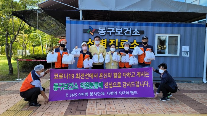 장선애 동구보건소장은 “오늘 사랑의 사다리 밴드 봉사단체에서 맛있는 통닭을 지원해 주어서 큰힘과 위안이 된다.”면서 “동구보건소는 코로나19의 종식을 위해 최선의 노력을 다하겠다.”고 말했다.
