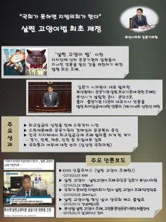 김 의원은 지난해 새롭게 바뀐 부산의 지방권력에서 우수한 의정활동을 펼치는 의원 중 한명으로 인정받아 다수의 상을 수상하였으며, 전국 최초로 일명 “살찐 고양이법”으로 불리는「부산광역시 공공기관 임원 보수기준에 관한 조례」를 상정하여 화제가 된 인물이다.