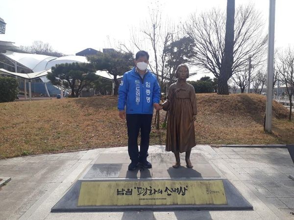 또한, 전)남원 평화의소녀상 건립 집행위원장으로 일하면서 지난 2016년 5월 평화의 소녀상 건립을 추진했다. 최근 임 후보는 소녀상과 함께 사진을 찍으며 “소녀상이 내민 손을 잡아 아픔을 공감하며, 이제 우리가 함께 내딛는 걸음은 인권과 평화가 존중되는 세상을 향할 것입니다”고 전했다.