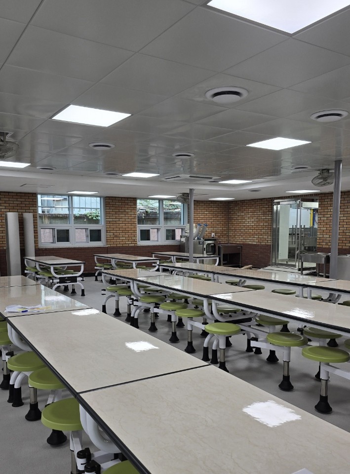 식당은 전면 리모델링으로 공간 활용도를 높였으며, 식탁·의자 교체와 냉난방 시설 보완 등으로 학생들이 안전하고 편안하게 식사할 수 있는 환경을 조성했다.