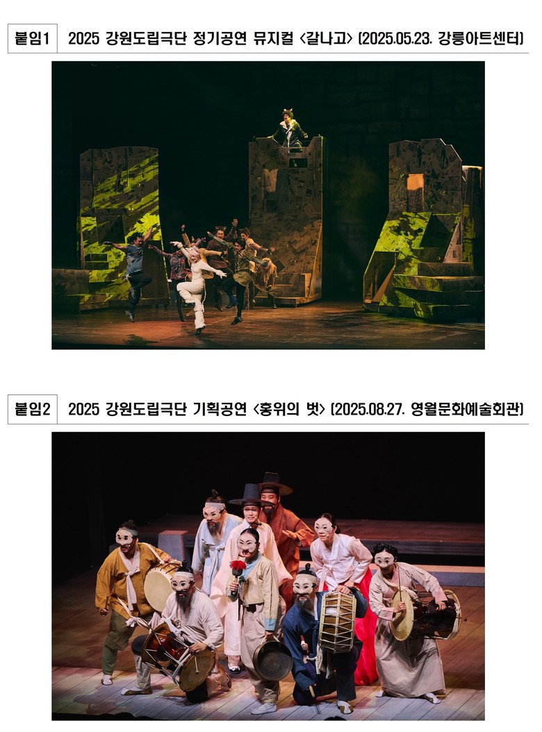 강원도립극단은 그간 지역 밀착형 공연 제작과 도민 문화 향유 확대를 핵심 가치로 운영되어 왔으며, 이번 채용 제도 개편을 통해 지역 예술 인재의 발굴–육성–활동으로 이어지는 선순환 구조를 본격적으로 구축한다는 계획이다.