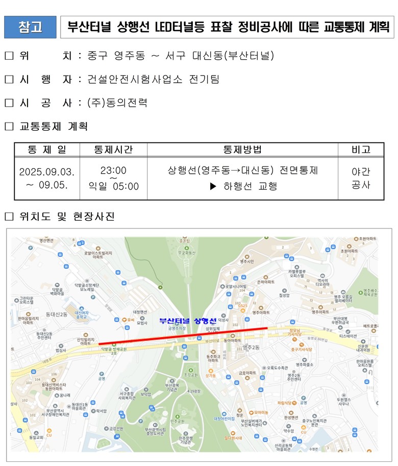 - (위 치) 중구 영주동~서구 대신동 [부산터널 상행선(영주동→대신동)]
