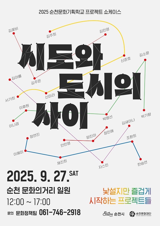 한편, ‘시도와 도시의 사이’는 순천문화기획학교의 연계 과정으로 수강생들의 실전 기획역량을 강화하고 순천 청년문화인력의 지속가능한 활동기반을 마련하기 위해 기획됐다.