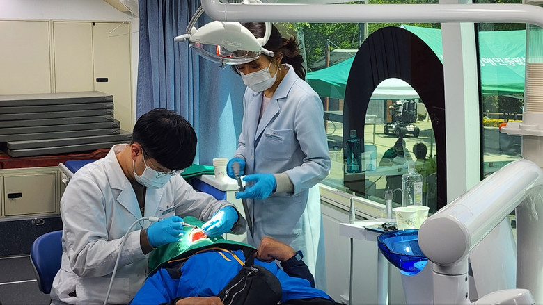 | ▲ 건강버스에서 치과진료중인 장애인 |