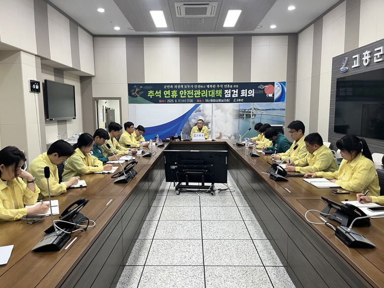 [고흥군 세계타임즈=우덕현 기자] 고흥군(군수 공영민)은 지난 17일 군청 재난종합상황실에서 ‘추석 연휴 안전관리 대책 점검회의’를 개최하고, 연휴 기간 군민과 귀성객의 안전 확보를 위한 종합대책을 논의했다.