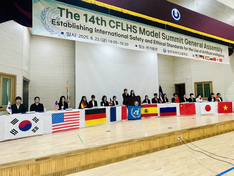 [충북 세계타임즈=이현진 기자] 청주외국어고등학교(교장 정은영)는 22일(금), 교내 대표 프로그램인 제14회 모의정상회담을 성공적으로 개최하였다.
