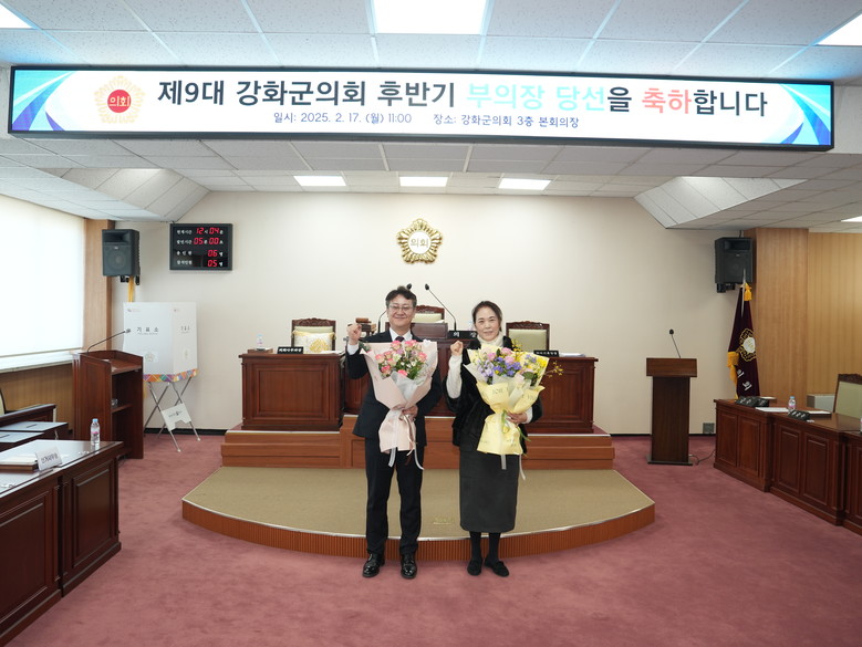 또한 고복숙 부의장은 “의장과 함께 강화군의 발전과 군민의 복리 증진을 위해 최선을 다하겠다”며, “투명하고 공정한 의회 운영을 통해 신뢰받는 의회를 만들어 갈 것”이라고 당선 인사를 전했다.