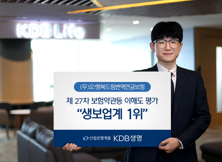 KDB생명은 ‘(무)오!행복드림변액연금보험’ 상품의 보험 약관과 상품 설명서 평가에서 평가 위원과 일반인 평가를 합산한 점수로 79.6점을 받아 18개 생보사 중 최고점을 기록했다. 특히, 지난 ‘제25차 보험약관등 이해도 평가’ 생보업계 1위 기록에 이어 이번 평가에서 다시 한번 생보업계 1위를 기록하는 성과를 거두었다.