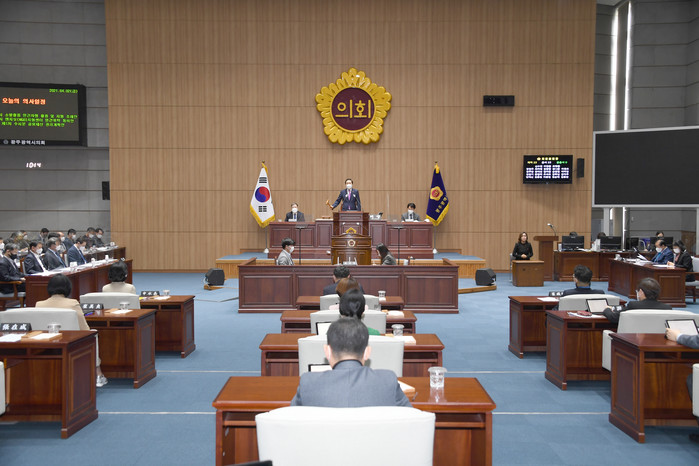 주요내용은 △신수정 의원 인공지능(AI) 집적단지 조성 사업 문제점 등 4건 △김학실 의원 도시철도 2호선 노선 사각지대 문제해결 등 5건 △반재신 의원 평동준공업개발 공정성 문제해결 방안 △김동찬 의원 인구감소를 고려한 주택 수급정책 재검토 등 5건 △김나윤 의원 법률전문 시스템 구축 등 3건 △최영환 의원 광주FC 축구 전용구장 안전 취약 재검토 등 2건이다.